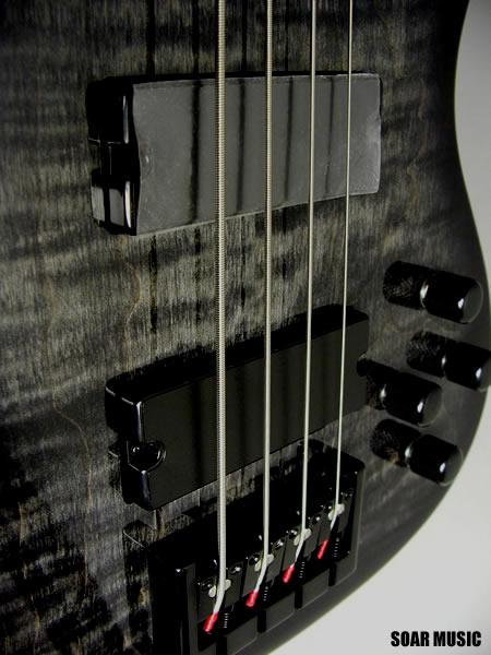 | ボディトップ材にフレイムメイプルを採用した4弦ベース BOB-850シリーズです。 材の鳴りを十分に引き出せるよう、贅沢に12mm厚ものフレイムメイプル材をトップ材に使用し、ボディバックに採用されたのアッシュ材と組み合わせることで、抜けの良い高音域、輪郭のハッキリとした中低音域で明るいサウンドを活かし、十分なアタックレスポンスを兼ね備えたソリッドなトーンが魅力の機種です。プレイの幅を広げる24フレット仕様で、ハイポジションでの演奏ストレスを軽減する為、深めのカッタウェイにすることでスムーズな演奏を可能にします。フロント/リアピックアップにはオリジナルハムバッカーを搭載し、トレブルとベース ブースト/ブーストカットが可能なアクティブ仕様で、力強くタイトなサウンドは勿論、繊細なプレイスタイルへも対応できる柔軟で幅広いサウンドメイクが可能です。 また、24フレットであっても高い剛性とサウンドの伝達が得られるよう、選定されたブリッジとペグパーツを採用。豊かなサスティン、高い安定性を実現しています。 |