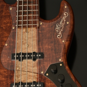 ボディトップと指板に独特な杢が出ているバーニングローズを採用しています。プリアンプはOBP-2を使用し、プリアンプのオンオフスイッチとパッシブトーンを付けパッシブでもアクティブでも自在にサウンドを操れます。