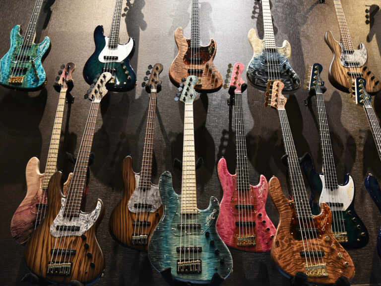 日本のみならず、世界中から木材の集まる飛鳥工場。商談会恒例となったEWC(エキゾチックウッドカスタム)では、工場蔵出しの希少材を用いて、これまでにないユニークなエレキギター・ベースを送り出します。個性豊かな限定モデルの数々をご覧ください。