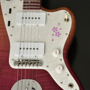 ピックアップはMojotoneを搭載しています。ピックガードに施された桜のデザインはレジンを使用しています。
