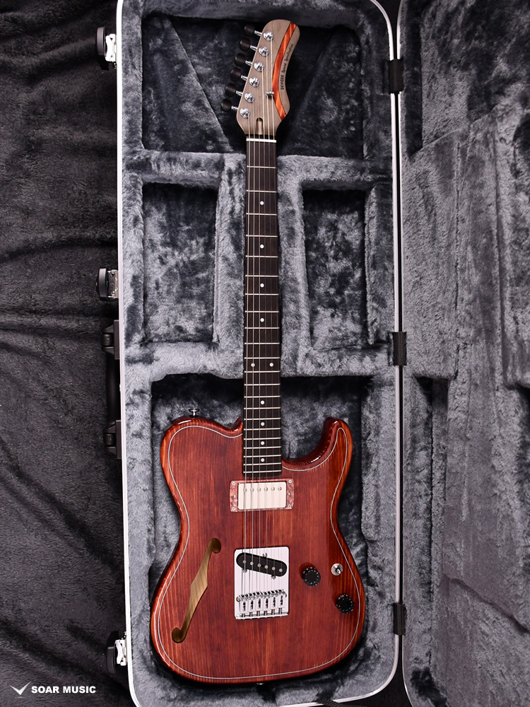 やわらかく、そして軽い木材として知られる赤松。ホロウボディも相まって取り回しが良く、一般的なアルダーやアッシュとも似て非なる、抜けの良く扱いやすいサウンドが特徴です。日本の気候のもとで生まれ育った、赤松にしか出せない音をぜひご体感ください。「ATQ-MRN(アンティーク・マルーン)」と名付けられたカラーは、くすみを帯びた和の面持ちを感じさせるカラーです。