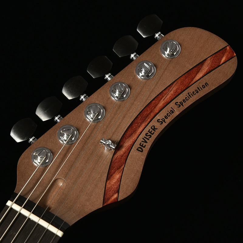 ライブパフォーマンスでの演奏活動を行う現場のギタリストからの支持率が非常に高い蓄光素材である「ルミンレイ」のサイドドットを採用。ライブ中の演出で照明を落としてもポジションを見失うこと無く、安心して演奏に向かうことが出来ます。