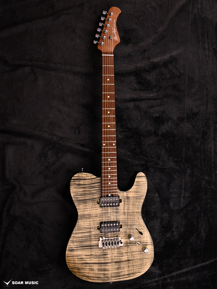 ローステッドメイプルとはメイプルを高温で加熱処理して材の中の水分や油分を揮発させることにより剛性を高めた材。ネックに使用されるとその効果は安定性だけでなくサウンドにも及び、豊かな生鳴りと経年変化したビンテージのようなこなれたトーンを生み出します。高級機種で使われることの多いこの本格派仕様をリーズナブルな価格帯に落とし込んだBacchusの新しい製品ラインナップです。