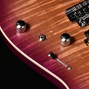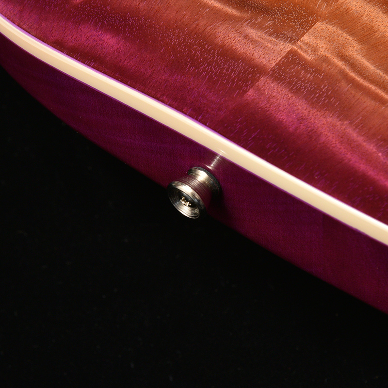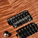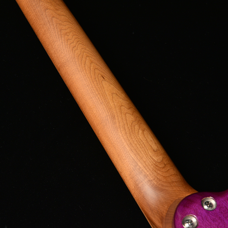 ボディトップに「フレイムマホガニー」を採用しております。フレイム杢が際立つようにボディセンターはナチュラルに仕上げ、バーストをかけることで上位機種にも引けを取らない華やかな外観に仕上がっています。