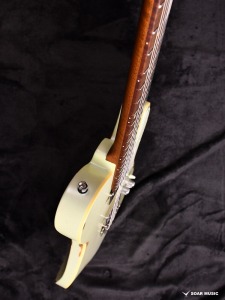 ネックとボディの接合部(ヒール)を削り込むヒールカット加工を施しました。ジョイントプレートを廃することで、ハイフレットを演奏する際に手にフィットし、違和感を感じさせない自然な形状となっています。