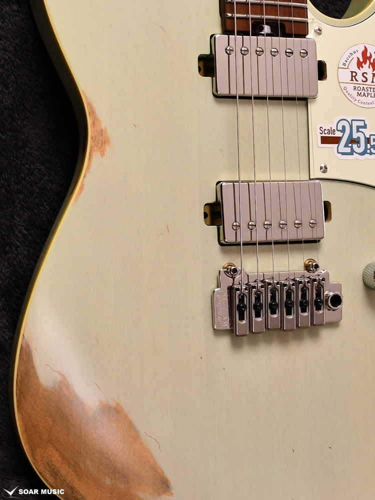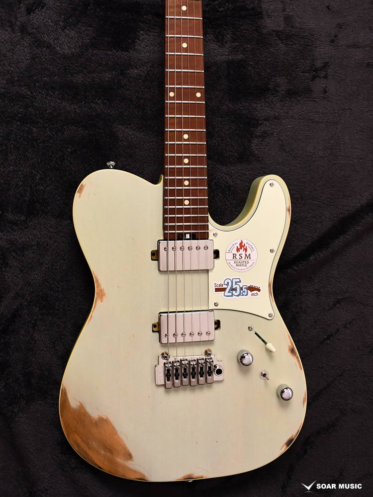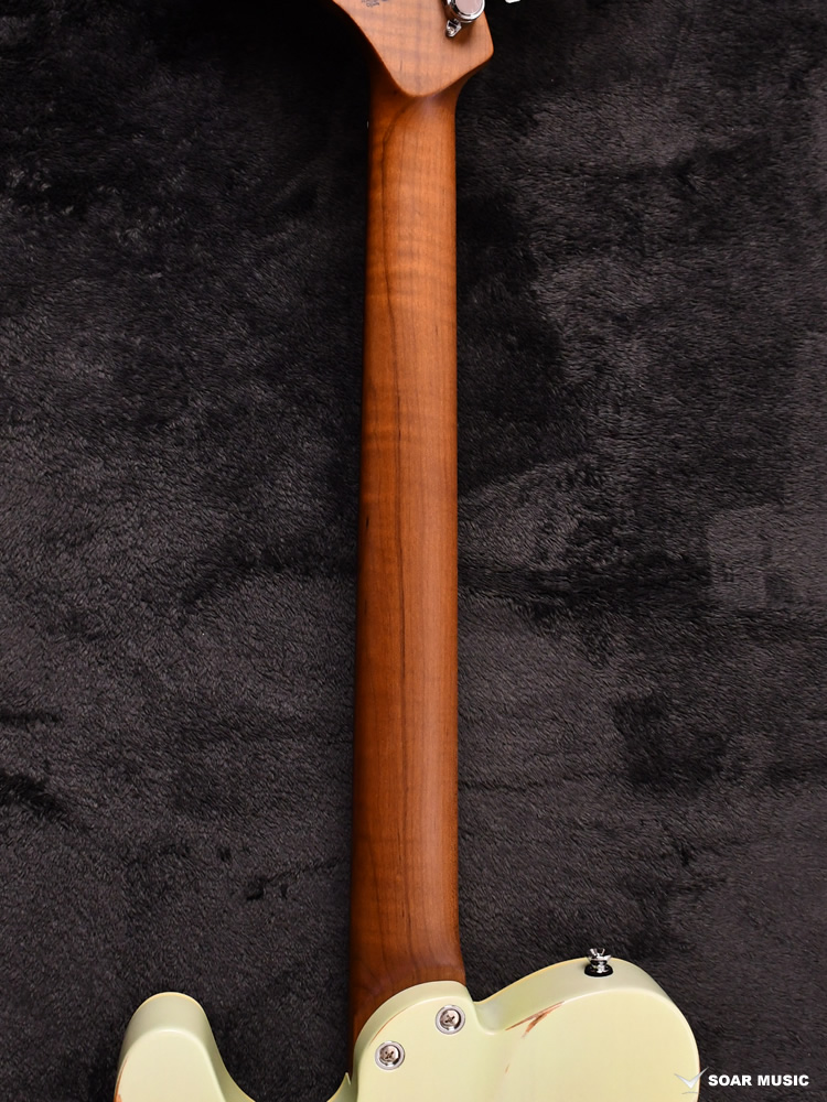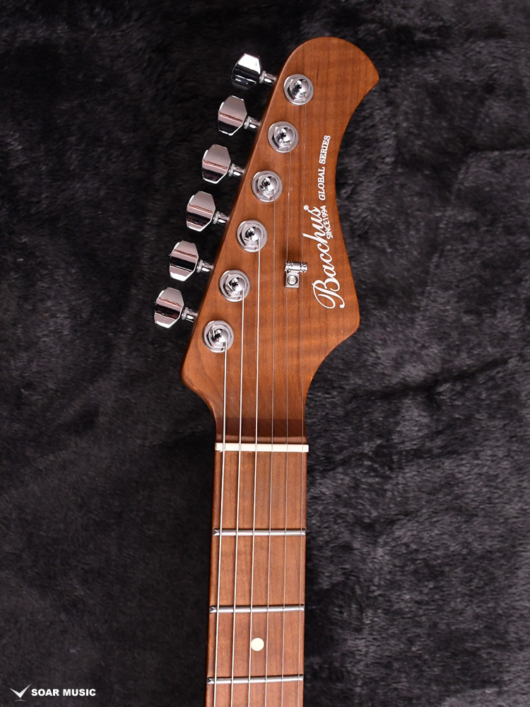 ローステッドメイプルとはメイプルを高温で加熱処理して材の中の水分や油分を揮発させることにより木材を経年変化した状態に人工的に近づけた材のことです。経年劣化が進んだ材は歪みやねじれが生じにくくなります。ネックに使用されるとその効果は安定性だけでなくサウンドにも及び、豊かな生鳴りと経年変化したビンテージのようなこなれたトーンを生み出します。一般的に高級機種などで用いられる材ですが、手に取りやすい価格帯に落とし込むことに成功しました。