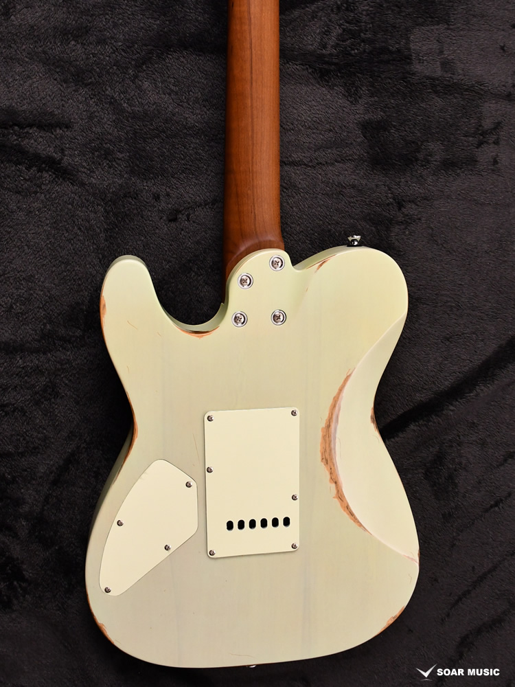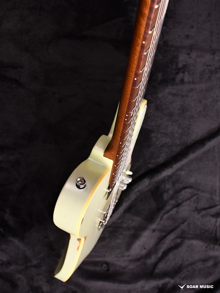 一本一本手作業で行われるボディのエイジド加工により、自然な経年変化を再現しています。一般的なグロスフィニッシュに代わりマットな風合いに仕上げることで、長年引き込んだような風格をその手に感じさせます。