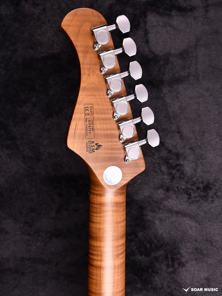 ネックにローステッドメイプルを採用することで、ハイエンドモデルの様な雰囲気を醸し出しています。ネックとしての剛性が高いためトラブルが少なく、また音の立ち上がりが良いカラッとしたビンテージギターのようなトーンを生み出します。(※メイプルの杢目には個体差があります)