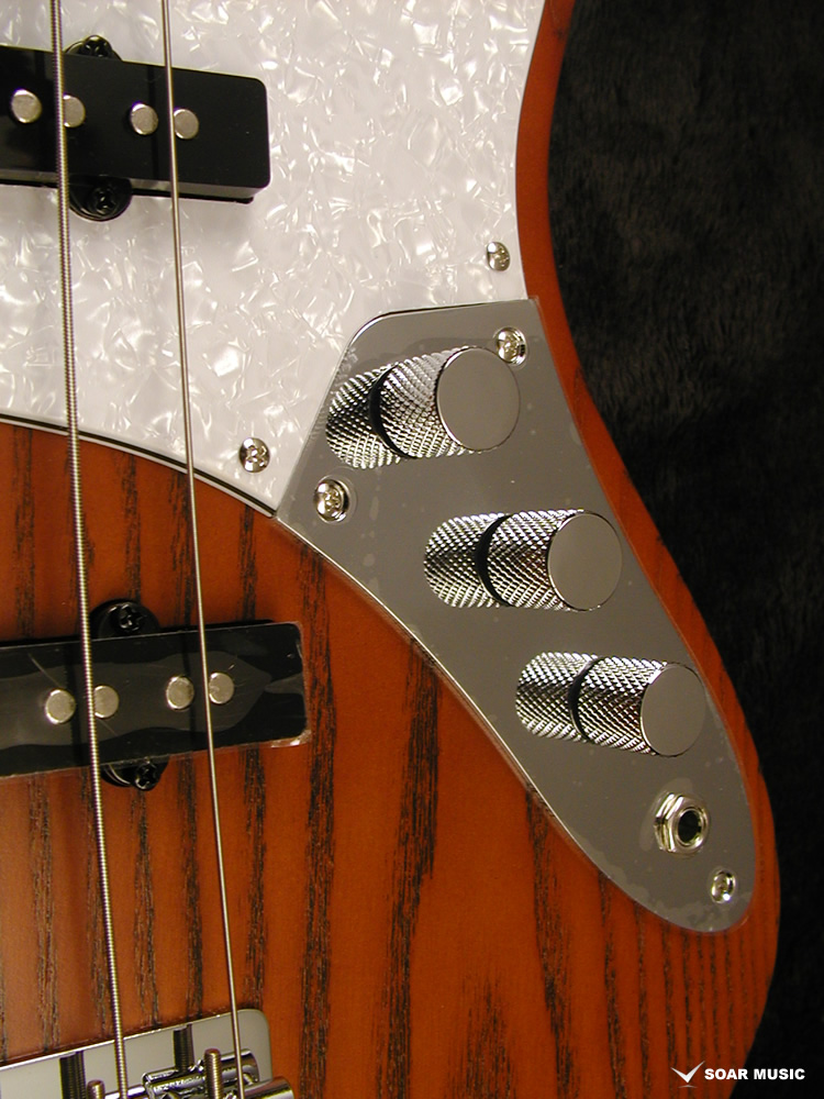 コントロール部分はスタンダードなジャズベースと同様、フロントピックアップボリューム、リアピックアップボリューム、マスタートーンとなり、シンプルで扱いやすい仕様です。