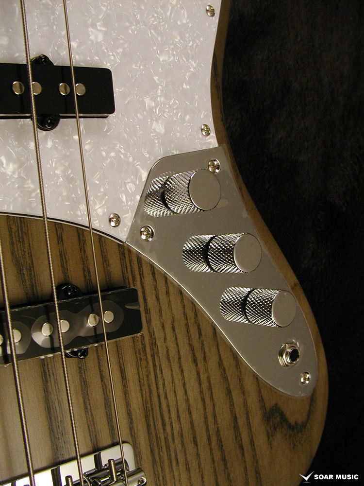 コントロール部分はスタンダードなジャズベースと同様、フロントピックアップボリューム、リアピックアップボリューム、マスタートーンとなり、シンプルで扱いやすい仕様です。