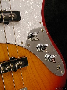 コントロール部分はスタンダードなジャズベースと同様、フロントピックアップボリューム、リアピックアップボリューム、マスタートーンとなり、シンプルで扱いやすい仕様です。