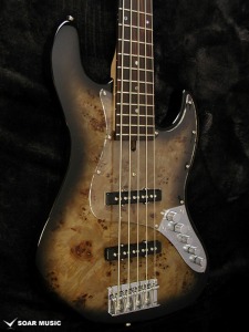 コストパフォーマンスに優れた海外生産ラインナップであるBacchus Universe Seriesに「WJB5-BP/Act」が登場しました。4弦モデルに続いて5弦モデルの登場です。 トップにはバールポプラ、バックにはマホガニーを使用。ポジションマークにはアバロンを採用し、高級感のある外観へと仕上がりました。ネックはメイプルとローズウッドの5Pを採用し、引き締まったサウンドへと仕上げられています。バール杢を生かすクリアピックガードを採用しています。
