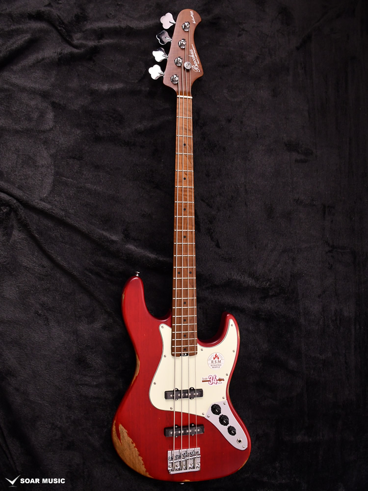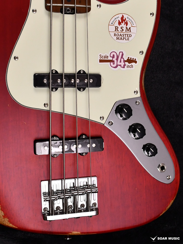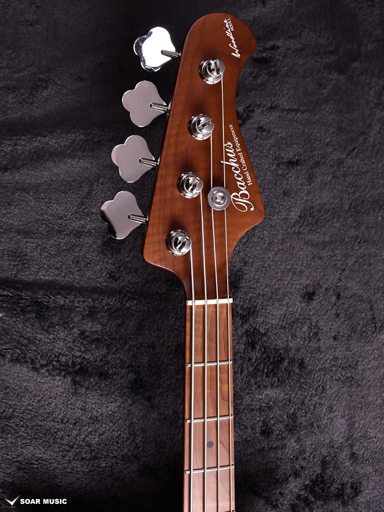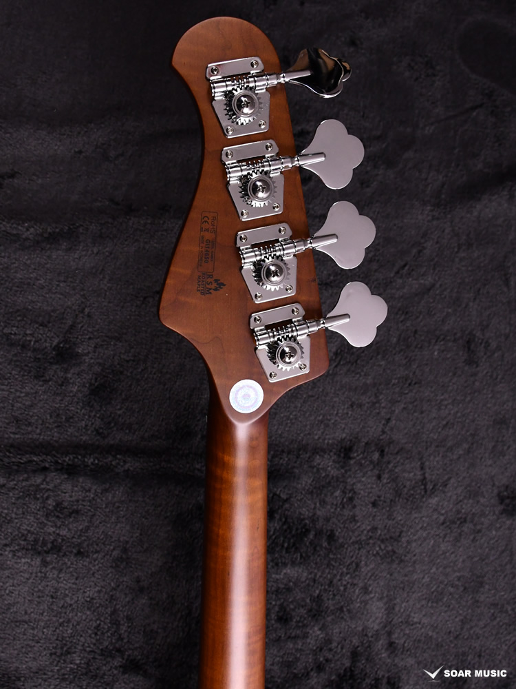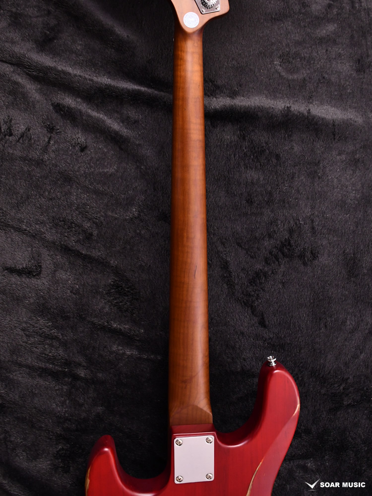 ローステッドメイプルとはメイプルを高温で加熱処理して材の中の水分や油分を揮発させることにより木材を経年変化した状態に人工的に近づけた材のことです。経年劣化が進んだ材は歪みやねじれが生じにくくなります。ネックに使用されるとその効果は安定性だけでなくサウンドにも及び、豊かな生鳴りと経年変化したビンテージのようなこなれたトーンを生み出します。一般的に高級機種などで用いられる材ですが、手に取りやすい価格帯に落とし込むことに成功しました。