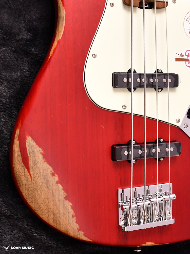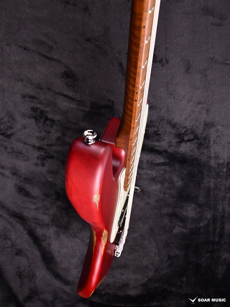 一本一本手作業で行われるボディのエイジド加工により、自然な経年変化を再現しています。一般的なグロスフィニッシュに代わりマットな風合いに仕上げることで、長年引き込んだような風格をその手に感じさせます。