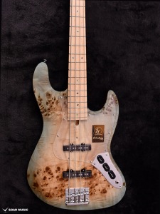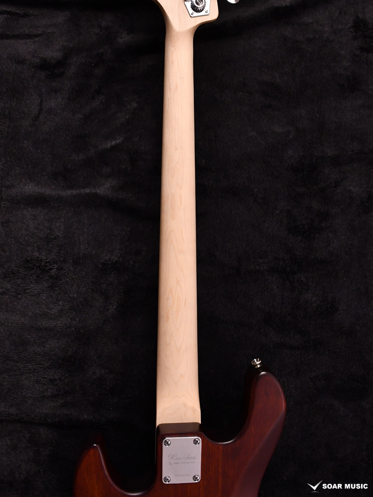 本モデルは過去にBacchus Handmade Seriesから限定モデルで登場した、KRB(渓流ブルー)とSYP(ソメイヨシノピンク)のカラーリングを踏襲した淡い色合いで仕上げています。薄い色のバーストは技術を要しますが、国産モデルを製造している飛鳥工場の職人の熟練した塗装技術を再現。メイプルの指板を含めてベース全体の外観を柔らかな雰囲気でまとめました。