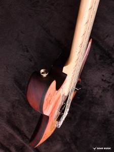 ボディトップを飾るのはバール杢の出ているポプラ材。ポプラは主に北米に分布する木ですが、北海道のポプラ並木など日本でも馴染みのある木材です。