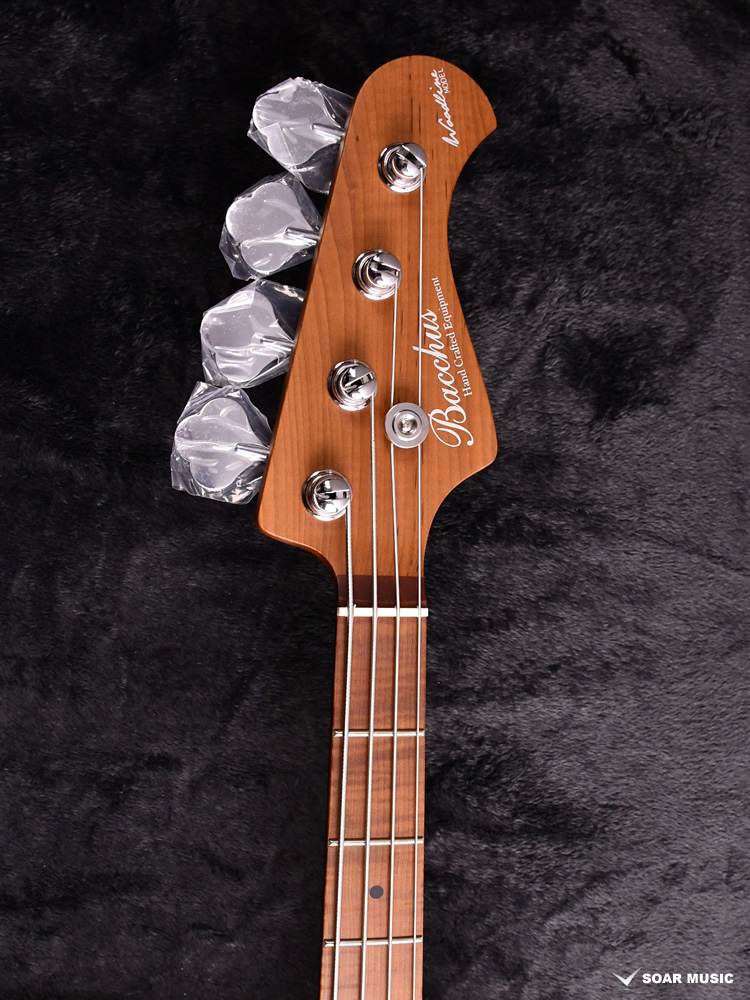ローステッドメイプルとはメイプルを高温で加熱処理して材の中の水分や油分を揮発させることにより剛性を高めた材。ネックに使用されるとその効果は安定性だけでなくサウンドにも及び、豊かな生鳴りと経年変化したビンテージのようなこなれたトーンを生み出します。高級機種で使われることの多いこの本格派仕様をリーズナブルな価格帯に落とし込んだBacchusの新しい製品ラインナップです。