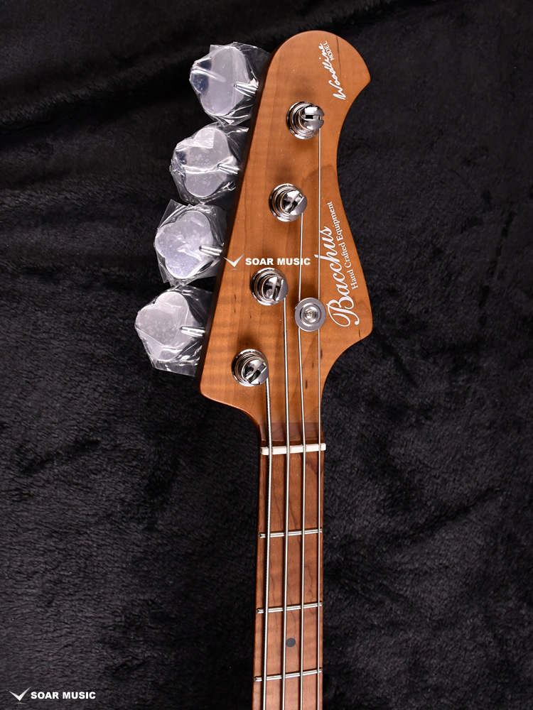 ローステッドメイプルとはメイプルを高温で加熱処理して材の中の水分や油分を揮発させることにより剛性を高めた材。ネックに使用されるとその効果は安定性だけでなくサウンドにも及び、豊かな生鳴りと経年変化したビンテージのようなこなれたトーンを生み出します。高級機種で使われることの多いこの本格派仕様をリーズナブルな価格帯に落とし込んだBacchusの新しい製品ラインナップです。