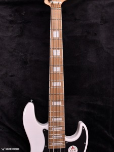 本モデルはアクティブ仕様で、Volume、Balancer、Treble、Bassのレイアウトとなっており、幅広い音作りが出来ます。 使い方としては、Balancerでフロントピックアップとリアピックアップの出力のバランスを決め、Treble、Bassの2バンドEQで音の太さや抜け感といった音のバランスを変え、Volumeで最終的な音の大きさをセッティングし、バンドアンサンブルの中でのベースの出音を手元で設定します。 また、ボリュームノブとバランサーの間にプリアンプのON/OFFスイッチも搭載されているため、足元などで音作りがしたい方でも問題なくご使用いただけます。