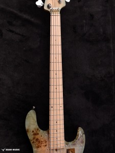 指板はボディトップのカラーリングに合わせてメイプルを採用。ポジションマークに使用している見た目にも美しいアバロン貝は、見る角度によって輝きが変わり、全体の淡い色合いにアクセントを付け加えます。