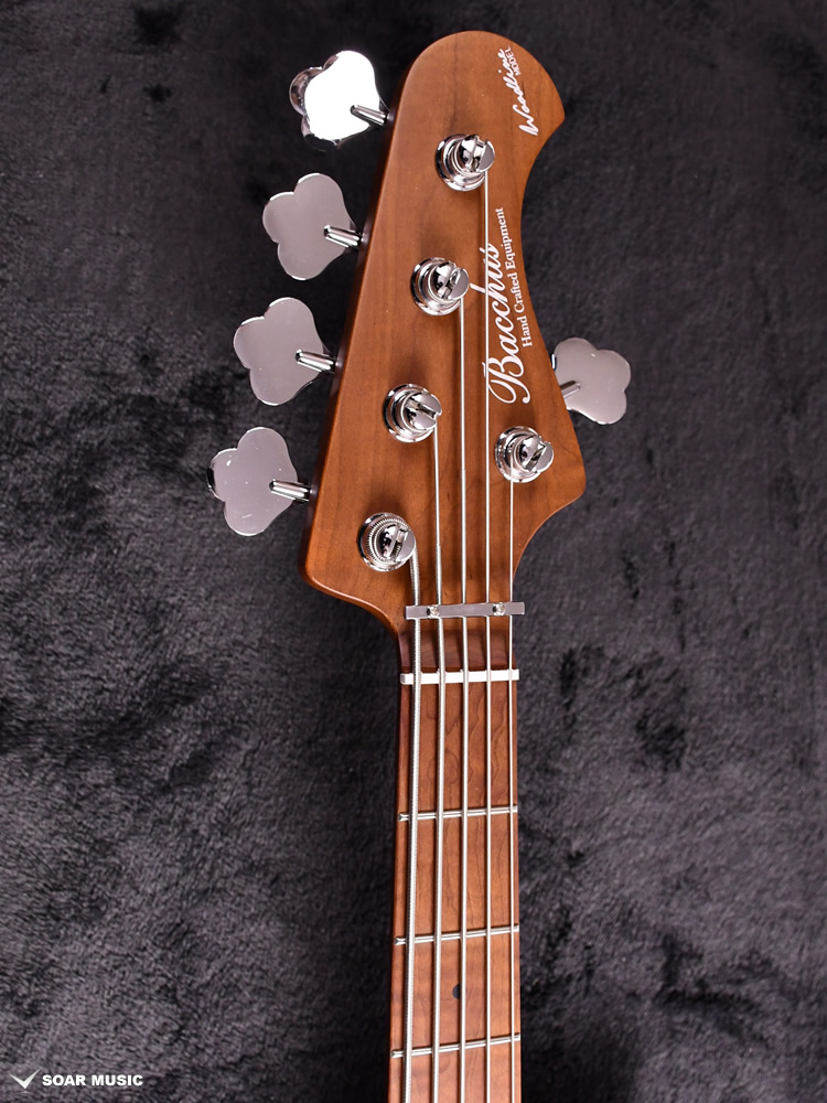 ローステッドメイプルとはメイプルを高温で加熱処理して材の中の水分や油分を揮発させることにより剛性を高めた材。ネックに使用されるとその効果は安定性だけでなくサウンドにも及び、豊かな生鳴りと経年変化したビンテージのようなこなれたトーンを生み出します。高級機種で使われることの多いこの本格派仕様をリーズナブルな価格帯に落とし込んだBacchusの新しい製品ラインナップです。