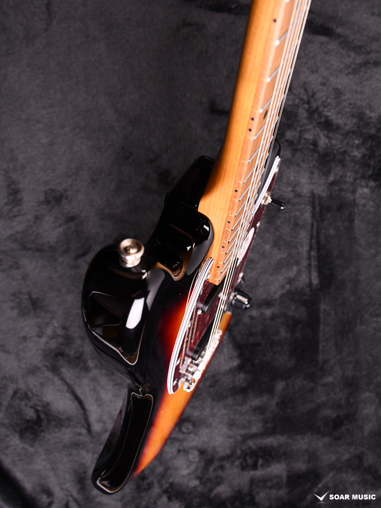 ネックにローステッドメイプルを使用したSSHレイアウトのモデル。 ピックガードやノブにミントカラーのパーツを採用し、オールドギターの風格を漂わせるルックスに仕上げました。 SSHピックアップレイアウトで粒立ちの整ったクリーントーンから、パワーあるオーバードライブサウンドまでジャンルを問わず幅広く音作りをすることができます。更にコイルタップスイッチを搭載し、リアハムはシングルピックアップの様なきらびやかなサウンドを出力します。