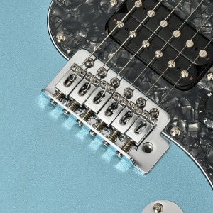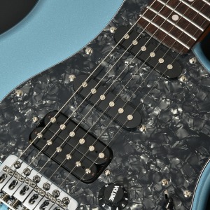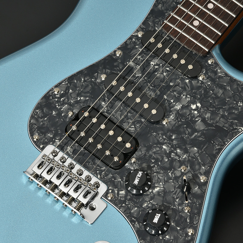ネックにローステッドメイプルを使用したSSHレイアウトのモデル。 ピックガードやノブにミントカラーのパーツを採用し、オールドギターの風格を漂わせるルックスに仕上げました。 SSHピックアップレイアウトで粒立ちの整ったクリーントーンから、パワーあるオーバードライブサウンドまでジャンルを問わず幅広く音作りをすることができます。更にコイルタップスイッチを搭載し、リアハムはシングルピックアップの様なきらびやかなサウンドを出力します。