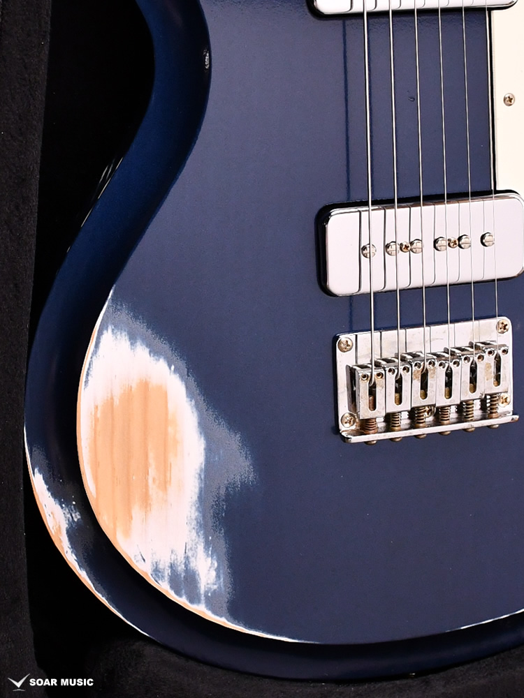 赤松の持つ節やシミを個性として捉え、全体的なデザインに馴染むようボディとヘッドストック、そして金属パーツにエイジド加工を施しています。