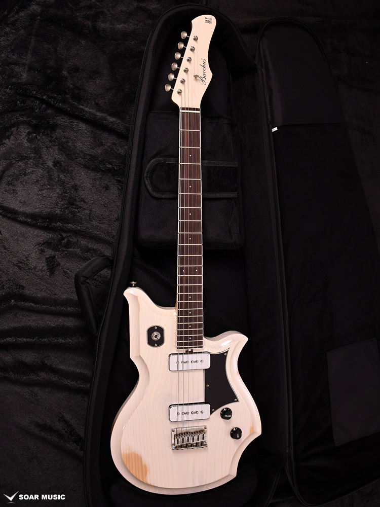 BacchusオリジナルのP-90タイプ「STP-1」を搭載。ワイドターンのP.U特有のキレと奥行きが共生したネックポジションでのトーンもさることながら、ドライでチャンキーなブリッジポジションとのミックストーンは高い汎用性と表現力を与えてくれます。軽快なサウンドが特徴の赤松ボディともマッチした、相性の良いピックアップです。