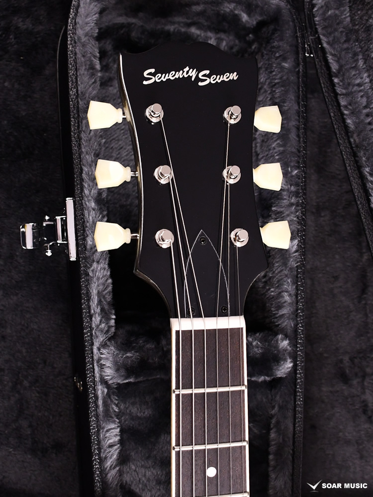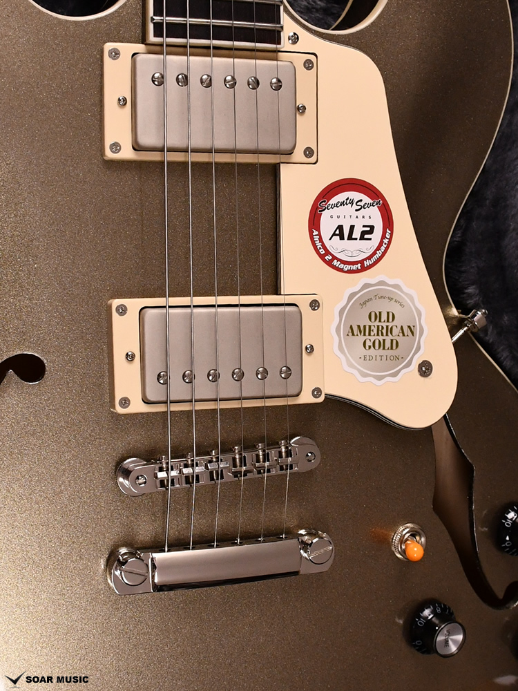 アルニコ2マグネットを採用したSeventySevenオリジナルピックアップ、 「SeventySeven AL2」を搭載。クリーントーンではきらびやかな鈴鳴り感を表現しつつも耳に痛くない暖かさを併せ持ち、ドライブをかけると歯切れの良いエッジの効いたクランチサウンドを出力します。プレイヤーの創造力を膨らませて豊かな演奏表現を生み出します。