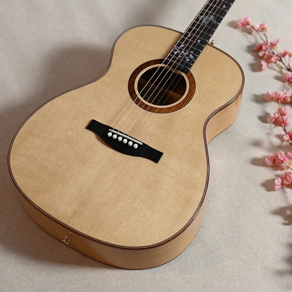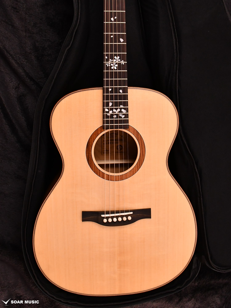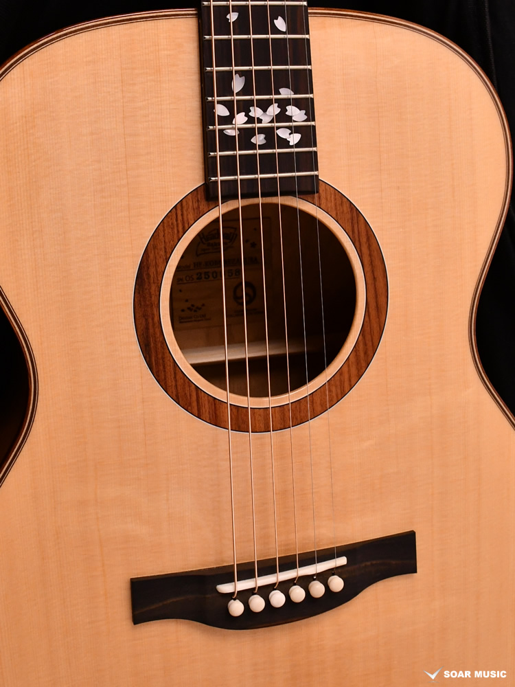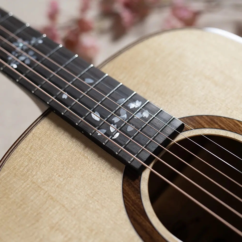 「零れ桜」の名にふさわしく、アコースティックギターの側面と背面にあたるサイドバックには、ラミネート加工された国産の桜材を使用。あえてカラーリングは施さず、一本一本異なる個性を持つ桜材特有の温かみのある淡い桃色の木肌の魅力をダイレクトに堪能いただけます。