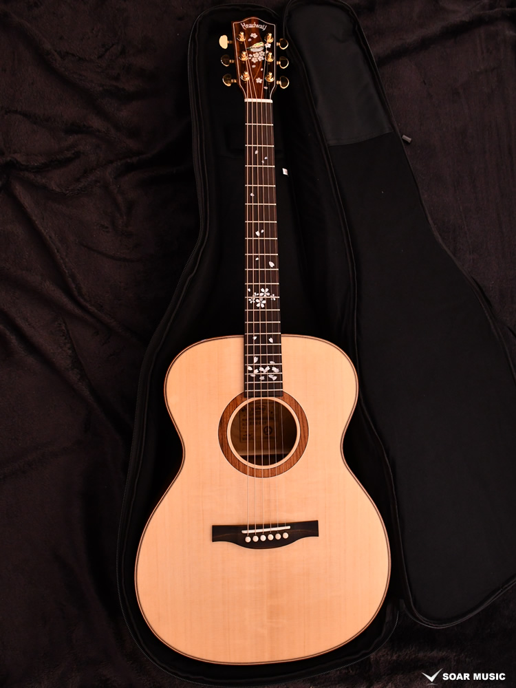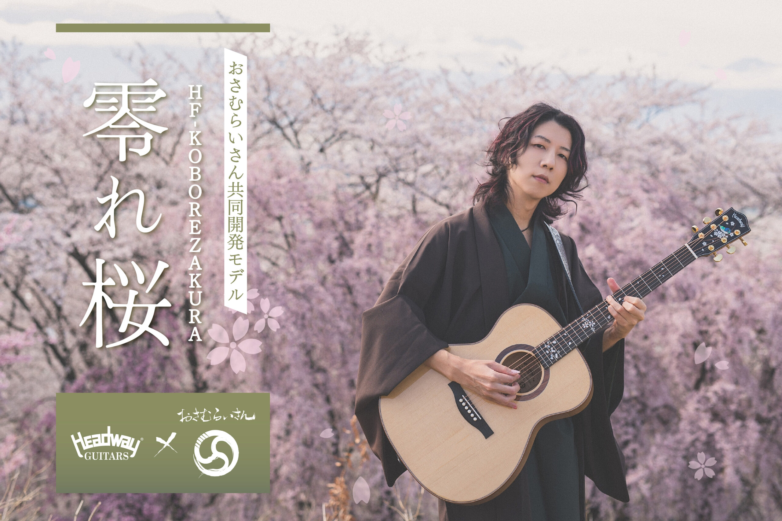 ソロギタリストおさむらいさんが愛用する、故・百瀬恭夫製作のHeadway Customshop Series 桜ギターの仕様をベースにしながらも、各所に調整を加え、手に取りやすい価格帯に落とし込んだHeadway × おさむらいさんの共同開発モデル。 元となったギターと同様に、小ぶりなボディシェイプを採用し、サイドバックには国産の桜材、指板には縞杢が際立つエボニー材を選定。ボディにはあえてピックガードを取り付けず、装飾をシンプルに抑えることで鳴りを最大限に引き出しています。
