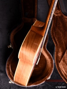 Headwayマスタービルダーの百瀬恭夫が1934年製のビンテージギターのブレーシングを研究し、独自に発展させたブレーシングを継承。Xのクロス位置がサウンドホールに近いセミフォワードシフトで新品時より低音の反応がよく、ボリュームのある鳴りを持ちます。フォワードシフトよりも5mmほどブリッジ寄りになっていることにより、トップ板の安定性も考慮された設計が行われています。