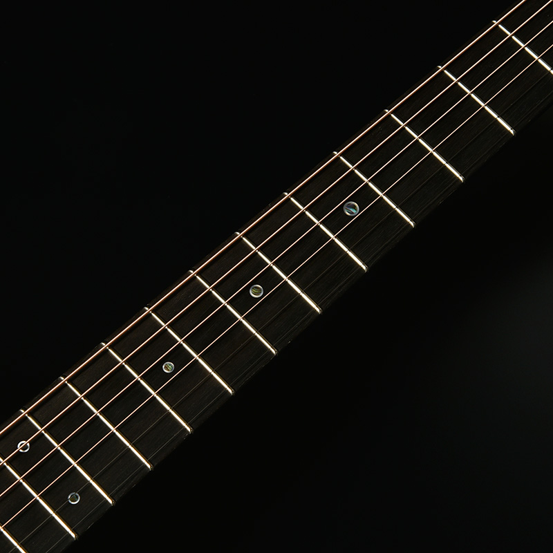 ポジションマークには白蝶貝のリングの中にアバロン貝のドットを入れ、18タイプの雰囲気を壊さない程度に新しさを演出しました。2種類の異なる輝きが非常に美しいので、是非その点にも注目してご覧いただきたいです。