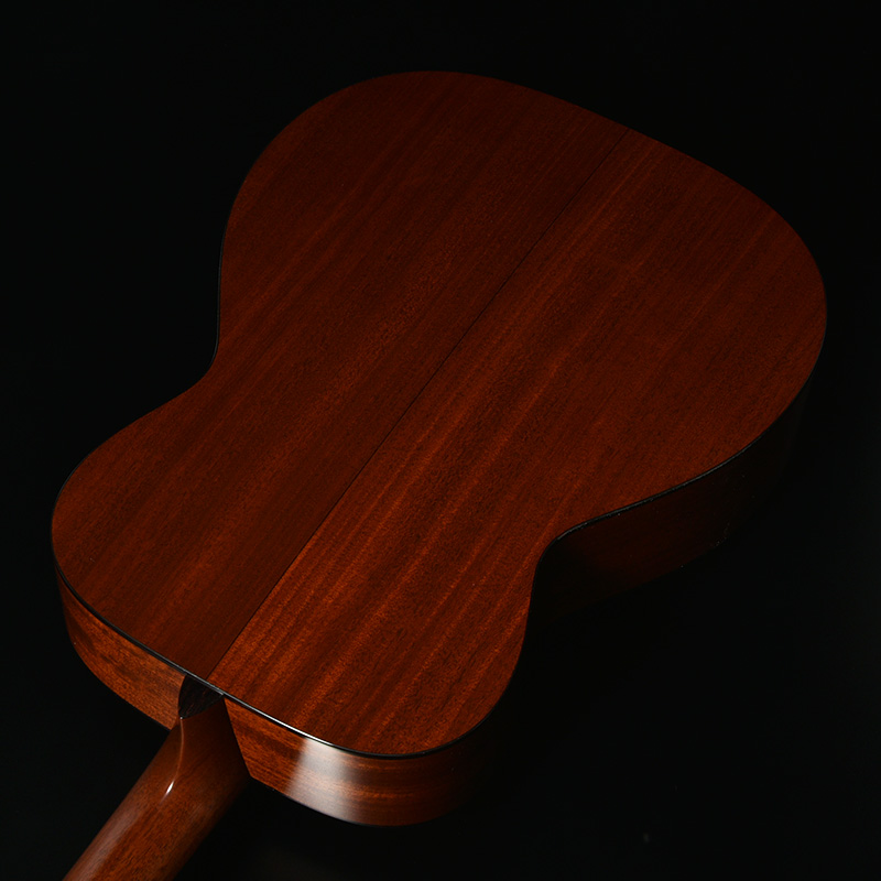 サイドバックには、綺麗で良質なホンジュラスマホガニーを採用し甘く素朴な雰囲気と鳴りを持たせています。