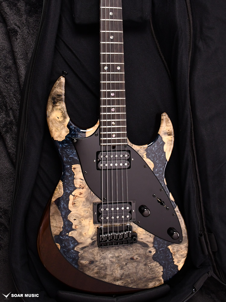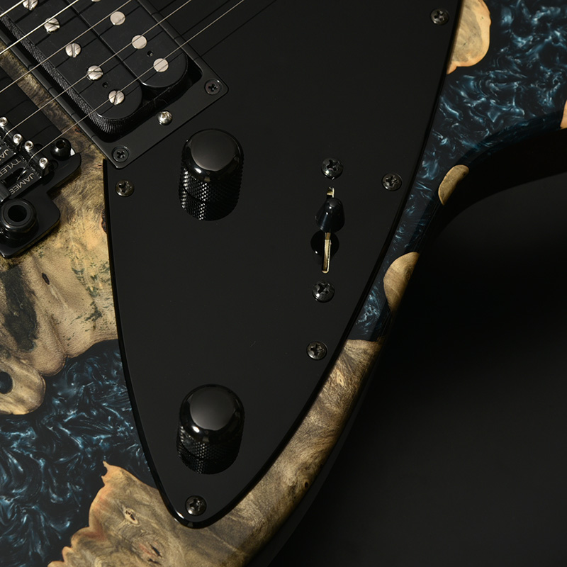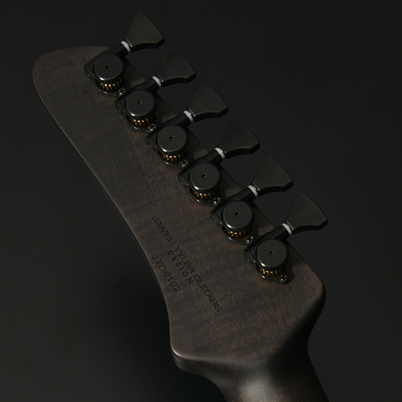 フレイム杢の現れたメイプルのネックは反りやねじれに強い「柾目(まさめ)」で製材されており、安定感抜群の演奏性と末長くご愛用いただける仕様を実現。ネックグリップはJames Tyler氏の好んだグリップ形状を踏襲しています。