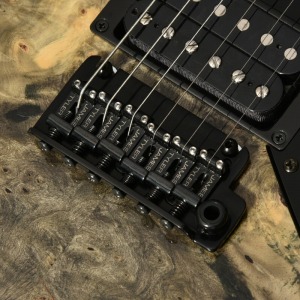 GOTOH社製の2点支持トレモロユニット、510T-SF1を搭載。510Tシリーズはトレモロユニットとしての性能を徹底的に追求。可動の支点となるエッジ部には高硬度のクロームモリブデン鋼を採用し、優れた強度と耐摩耗性を確保しています。その結果、アーミング後のチューニング安定性が飛躍的に向上し、演奏時の精度と信頼性を高めています。サドルには「James Tyler」のロゴが入った、STR JTG Designカスタム仕様のブリッジです。