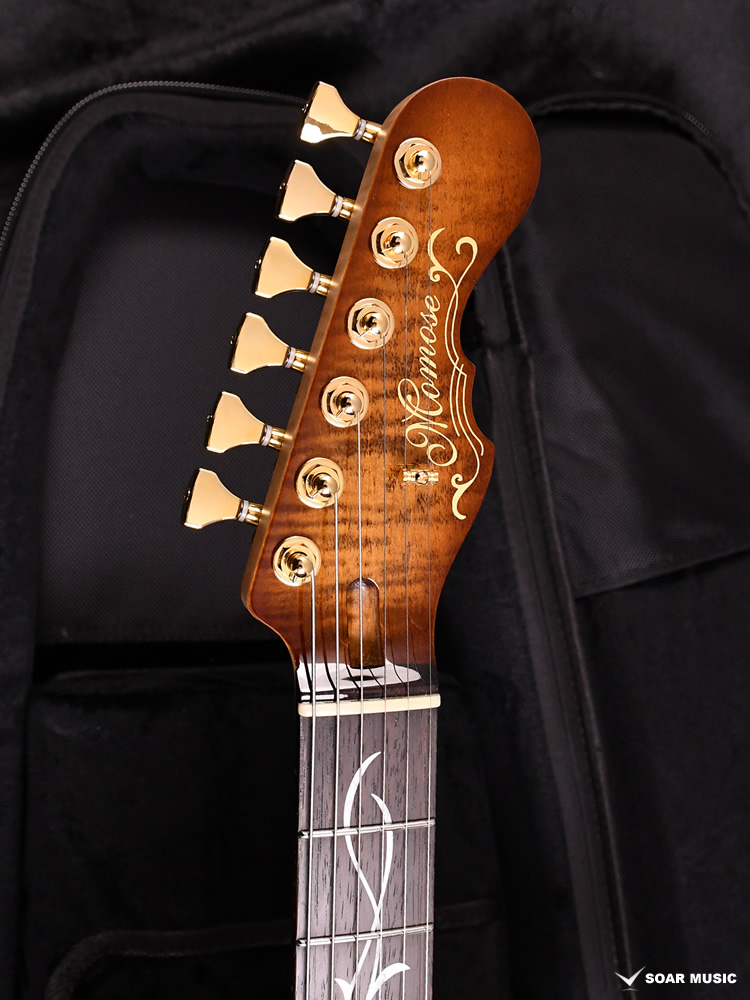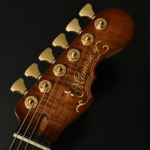 アーチトップが特徴的な新シェイプ”MA” (Momose Advanced)に、極上の和材フレイムトチを採用した特別な一本が登場。その見た目のみならず、H-H配列のピックアップ、2点支持トレモロ、24F仕様、ジョイント部分のヒールレスカット、そしてコイルタップ機能と言った現代のミュージックシーンを意識した仕様を数多く取り入れたモダンスタイルが特徴です。