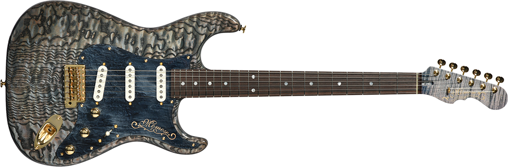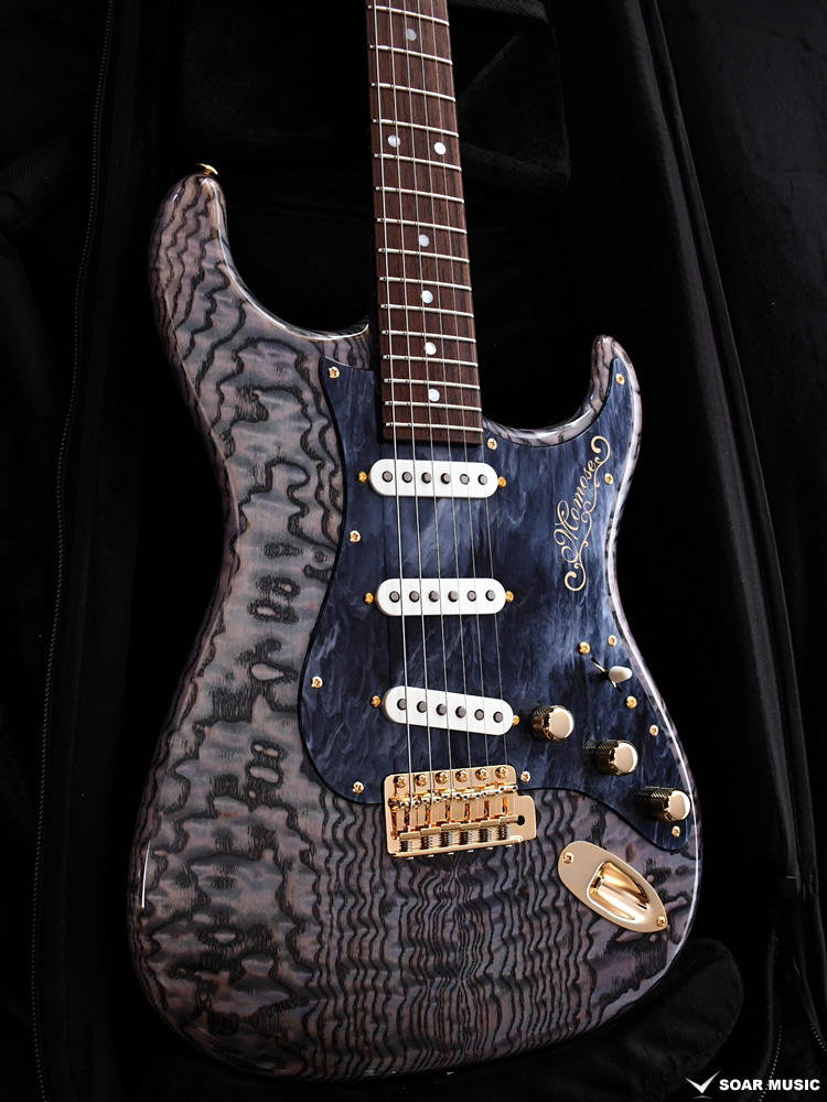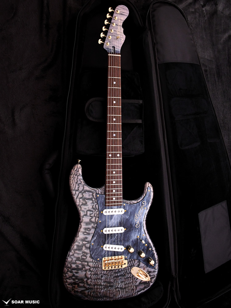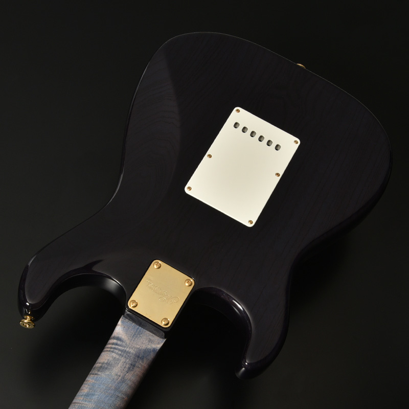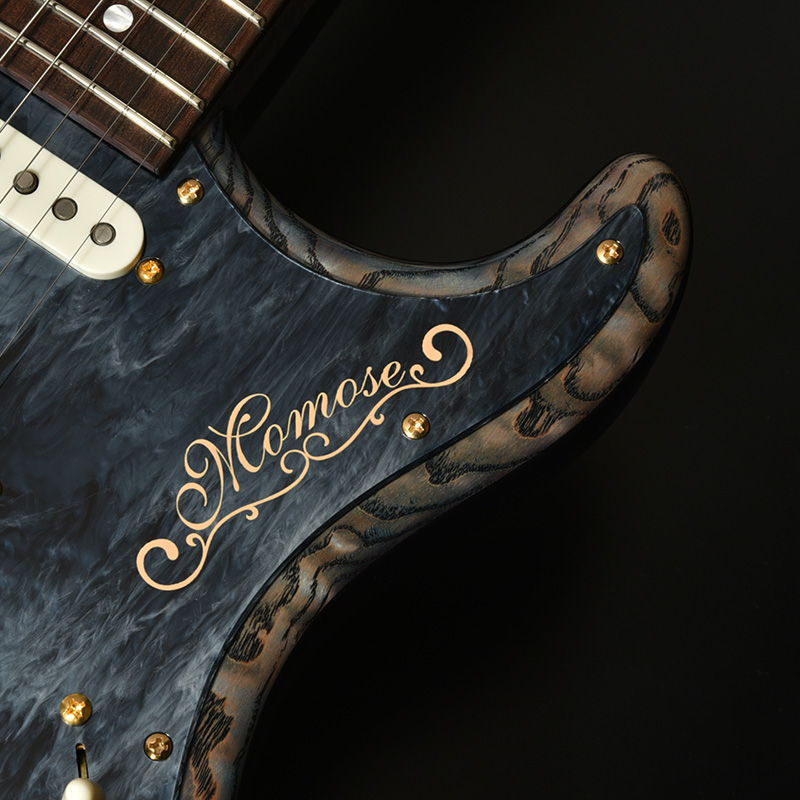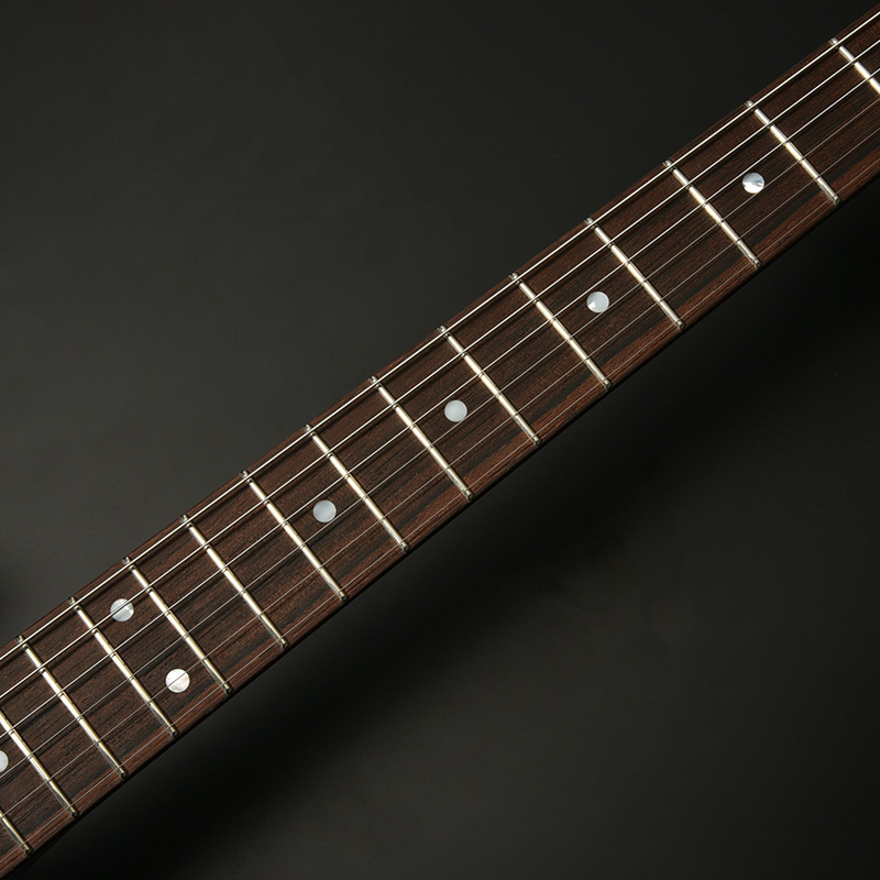 近年のその需要に対して希少性を増している、マダガスカルローズウッドを指板に採用。レギュラー製品では採用を終了しており、本数限定製作のショーモデルだからこそ実現した仕様となります。ネック材のフレイムメイプルは、ヘッドストックの先端までストライプの入ったハイグレードな個体を厳選。芸術的なルックスをぜひその目でお確かめください。