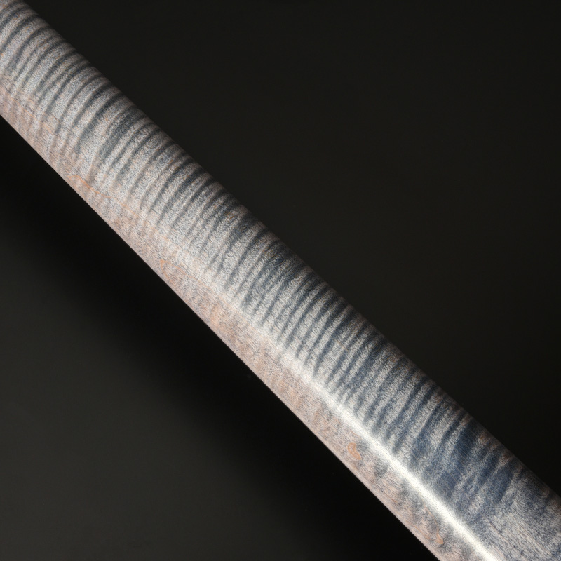 和材として知られる「タモ」の中でも、縦にひだ状の杢目を有す個体をキルトタモと称します。その独特の模様は着色されることでいっそう魅力を増し、インパクト抜群の個性的なルックスへと仕上がりました。