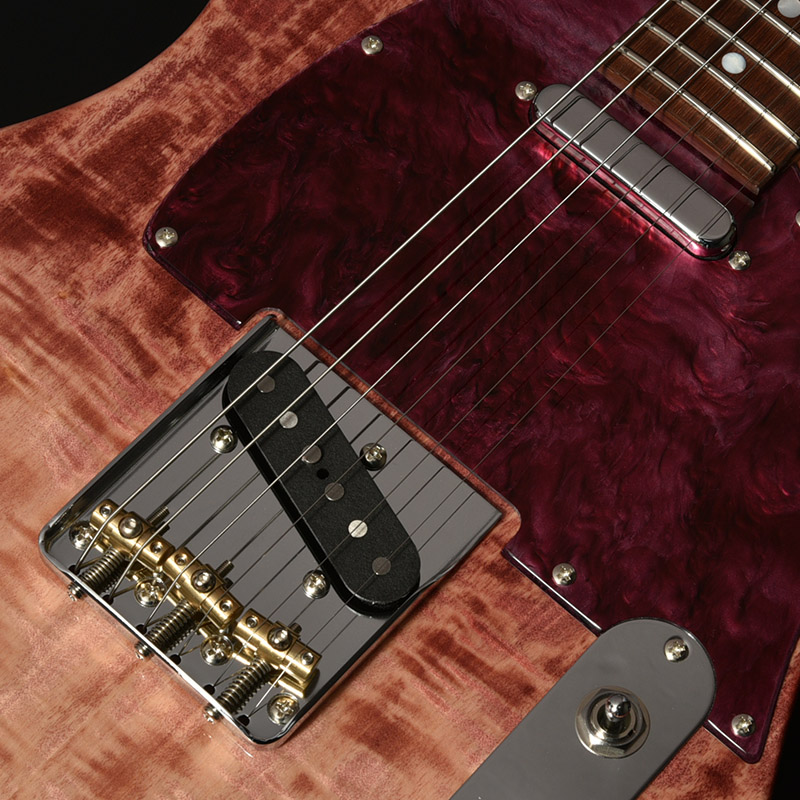 “Red Collection”に合わせて製作された本機のカラーリングは、Vintage Wine Redと名付けられました。文字通り年代物のビンテージワインを思わせる、くすみを帯びた味わい深い赤を表現しています。マッチングカラーのアクリルピックガードとの組合せにより、ギター全体を通して美しい赤の表現を目指しました。