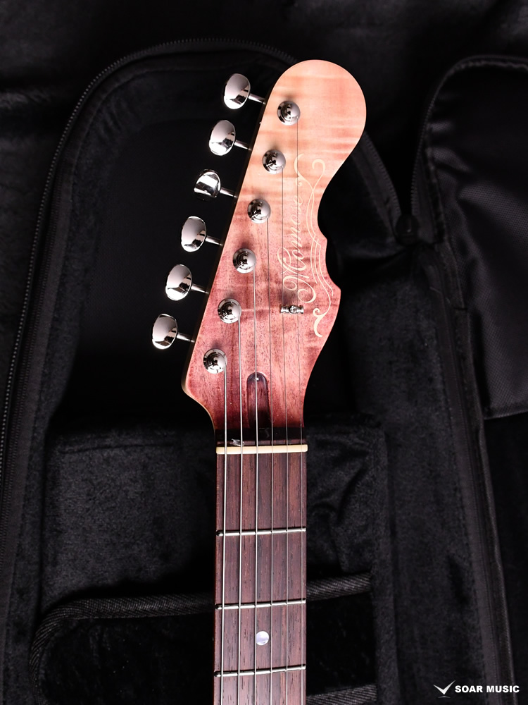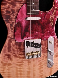和材として人気の高いトチ材をボディに使用した一本です。トップ材には美しいフレイム杢目を有した個体を選定し、バック材にも同じくトチを採用しています。中〜高音域に特徴のある抜けの良いサウンドを持ち、オーバードライブをかけた際の歪の乗りも非常に良く、その音響特性を発揮して様々なジャンルに対応可能です。