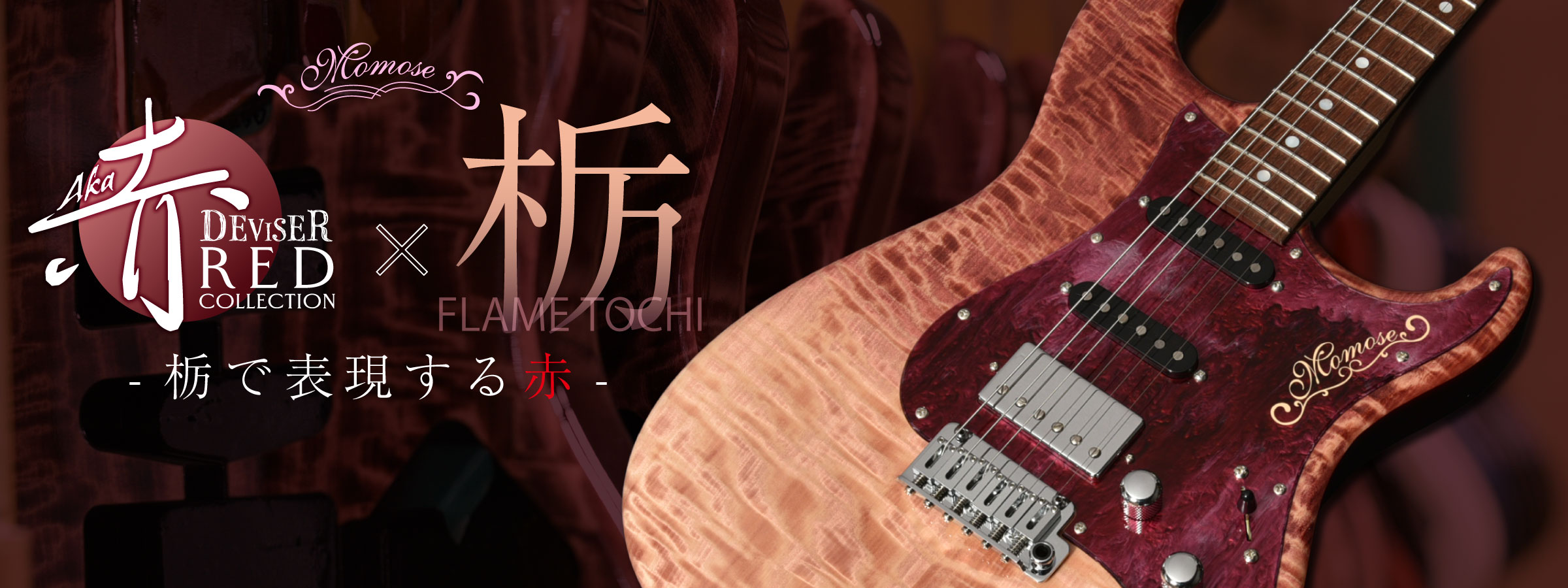 杢目を生かしたカラーリングとして人気の高い赤色。トチ材との組み合わせに注目した”RED COLLECTION”として、One Day Guitar Show限定のモデルを送り出します。