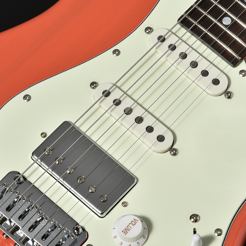 アメリカ、ノースカロライナ州のハンドワイアリングピックアップMojotoneを採用。50年代のビンテージモデルから連想される明瞭な輪郭を持つクリーンサウンドを志向して作られた”Classic Strat”をフロントとセンターに、PAFの再現を指向したClone ’59モデルにより現代的な味付けを加え、低音を少し強調し、サスティンが長くなるように調整した”Classic Hot”をリアポジションにレイアウトしています。