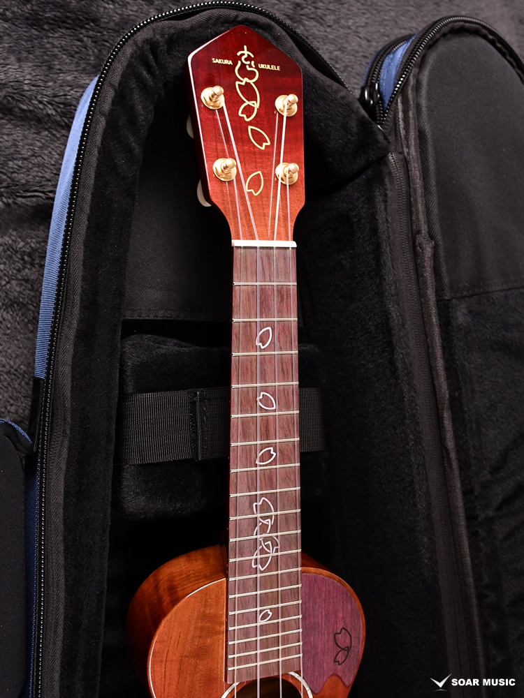 ポイントはHeadwayのアコースティックギターでも人気を博したインレイワークを元にSAKURA UKULELE用にデザインし直した「さくらチェーン」のインレイです。