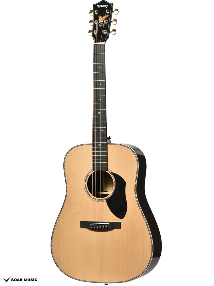 ナット幅を43mmから43.5mmに変更。その僅か0.5mmの差はネックを握った際のフィーリングをさらに向上させ、フィンガースタイルなど多様化する現代のプレイスタイルに自然に馴染みます。 リニューアルに伴い、ヘッドのイーグルインレイも一新。種類の異なる木材を巧みに使用した温かみのある新デザインです。
