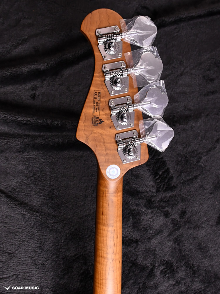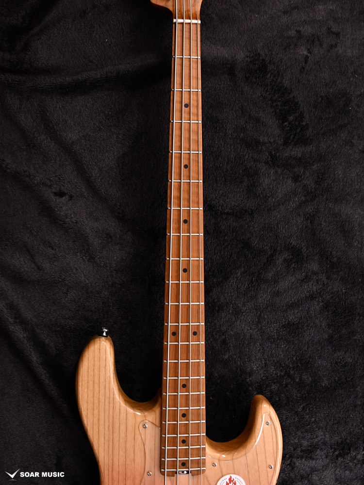 ローステッドメイプルとはメイプルを高温で加熱処理して材の中の水分や油分を揮発させることにより剛性を高めた材。ネックに使用されるとその効果は安定性だけでなくサウンドにも及び、豊かな生鳴りと経年変化したビンテージのようなこなれたトーンを生み出します。高級機種で使われることの多いこの本格派仕様をリーズナブルな価格帯に落とし込んだBacchusの新しい製品ラインナップです。